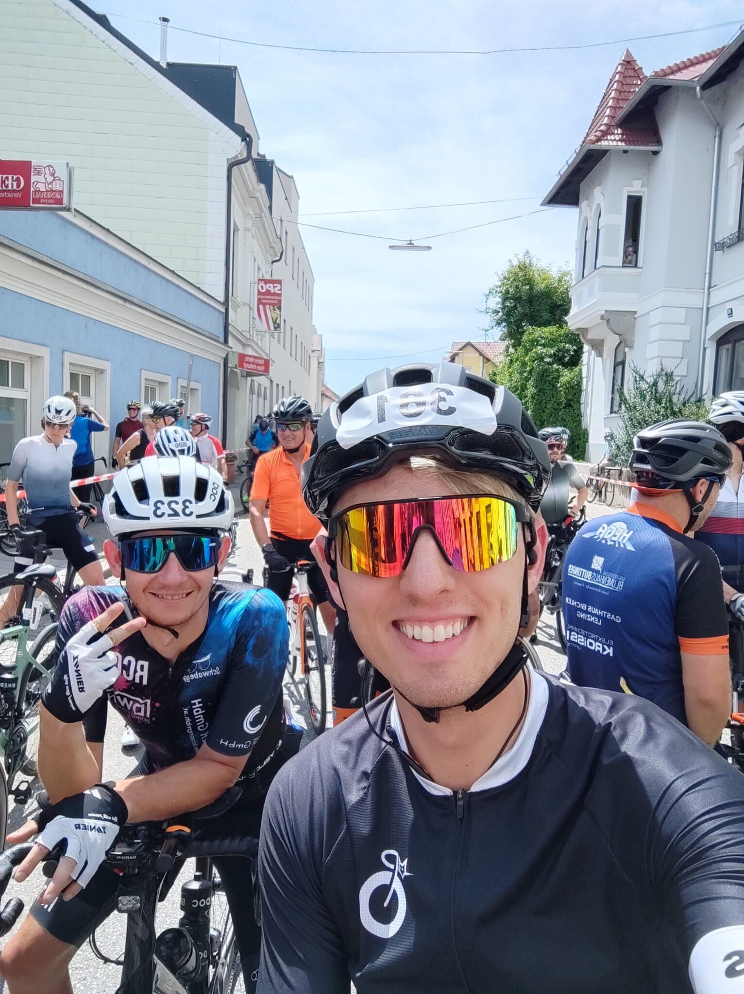 Startnummern ans Rad, Ausrüstung sortiert, letzte Besprechung mit den Betreuern, rein ins Trikot und los gings zum Start. Startzeit war um 12:00 Uhr – die größte Challenge für dieses Rennen: die Hitze.